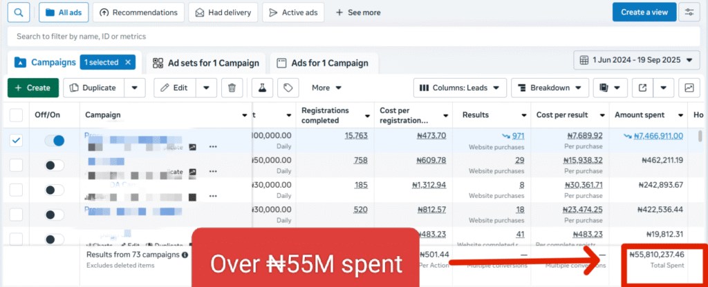 Managed over $150,000(N250M+) in adspend.